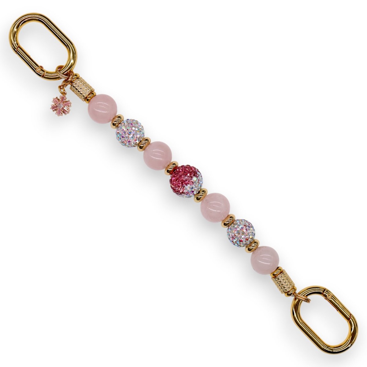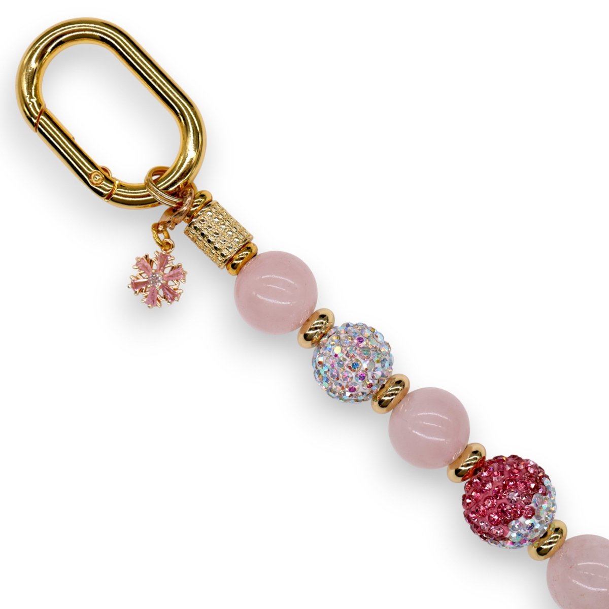 At the heart of Blush Frost shines a pink-to-iridescent gradient crystal center bead, paired with a gold-plated pink cubic zirconia snowflake charm that captures the sparkle of a snowy sunrise.