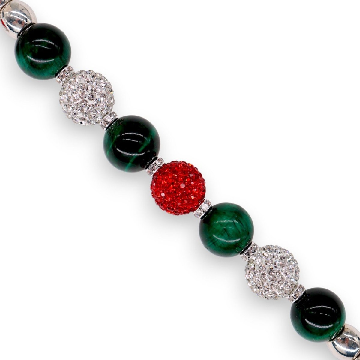 Crafted with rare green tiger eye gemstones and finished with a silver-plated red crystal heart charm, Christmas Love is a radiant celebration of the season. Its festive shimmer and heartfelt design capture the beauty and warmth of the holidays in every detail.