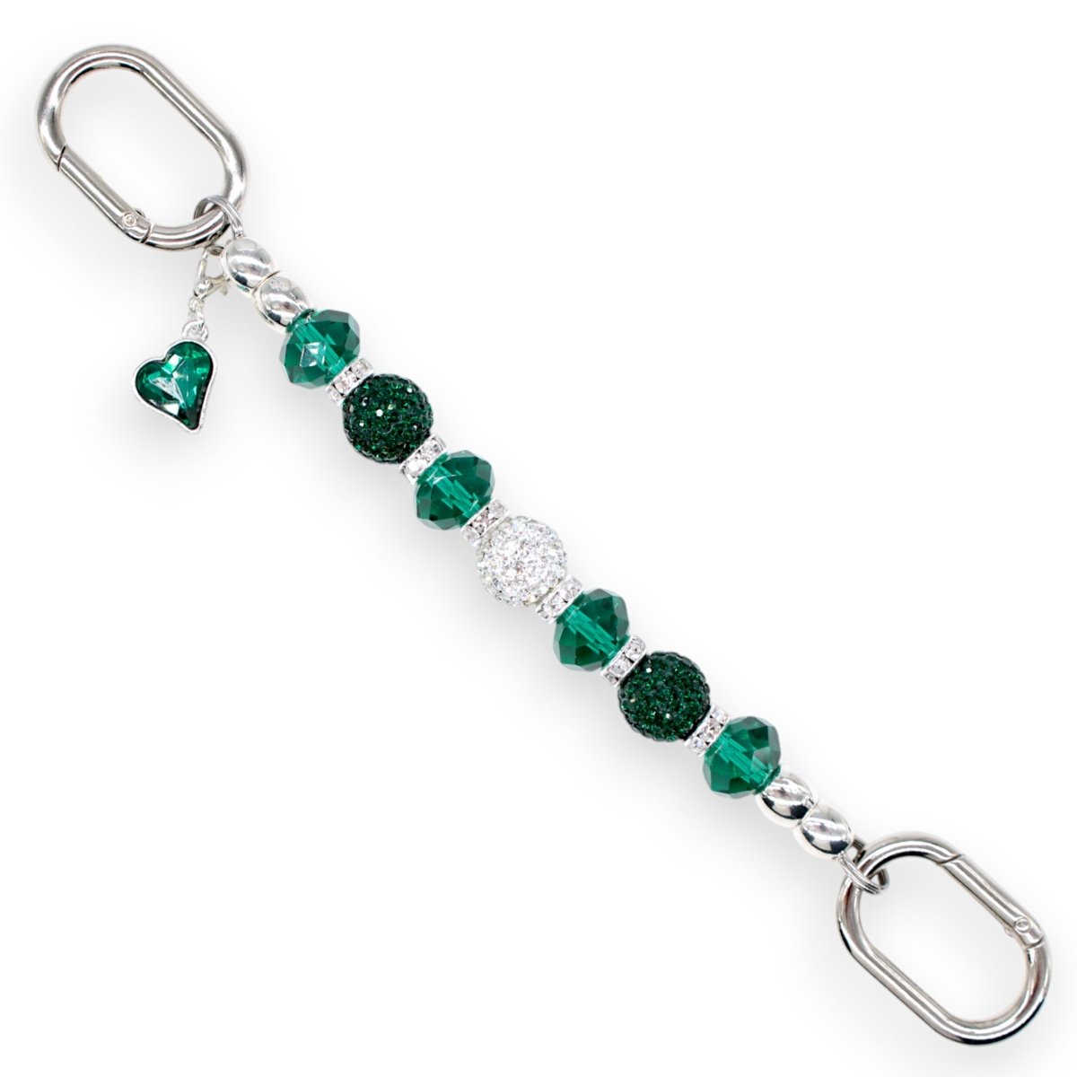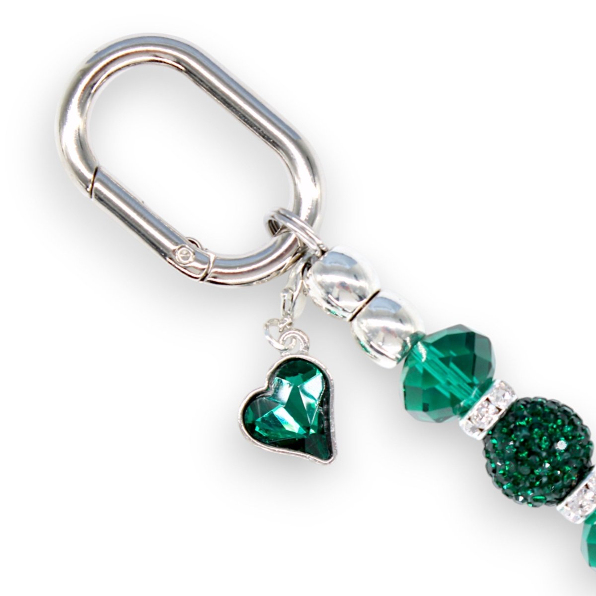 • Silver-Plated Emerald Glass Heart Charm – The stunning finishing touch.