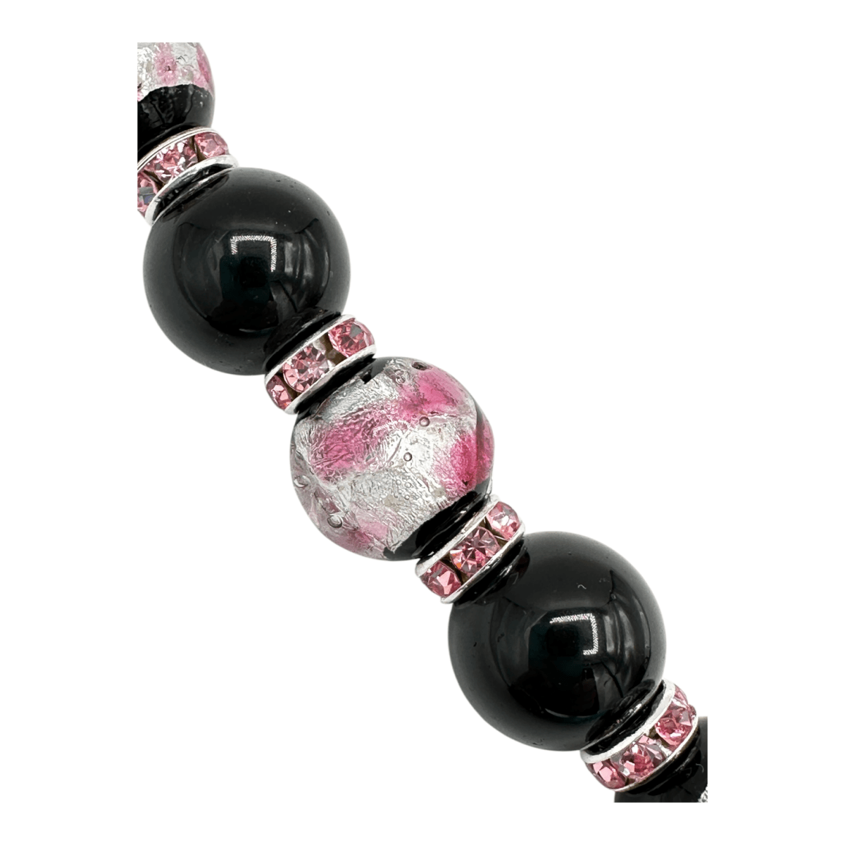 Handcrafted Black Obsidian & Pink Foil Glass Beads – A striking mix of grounding gemstone and glowing, artisan-made glass