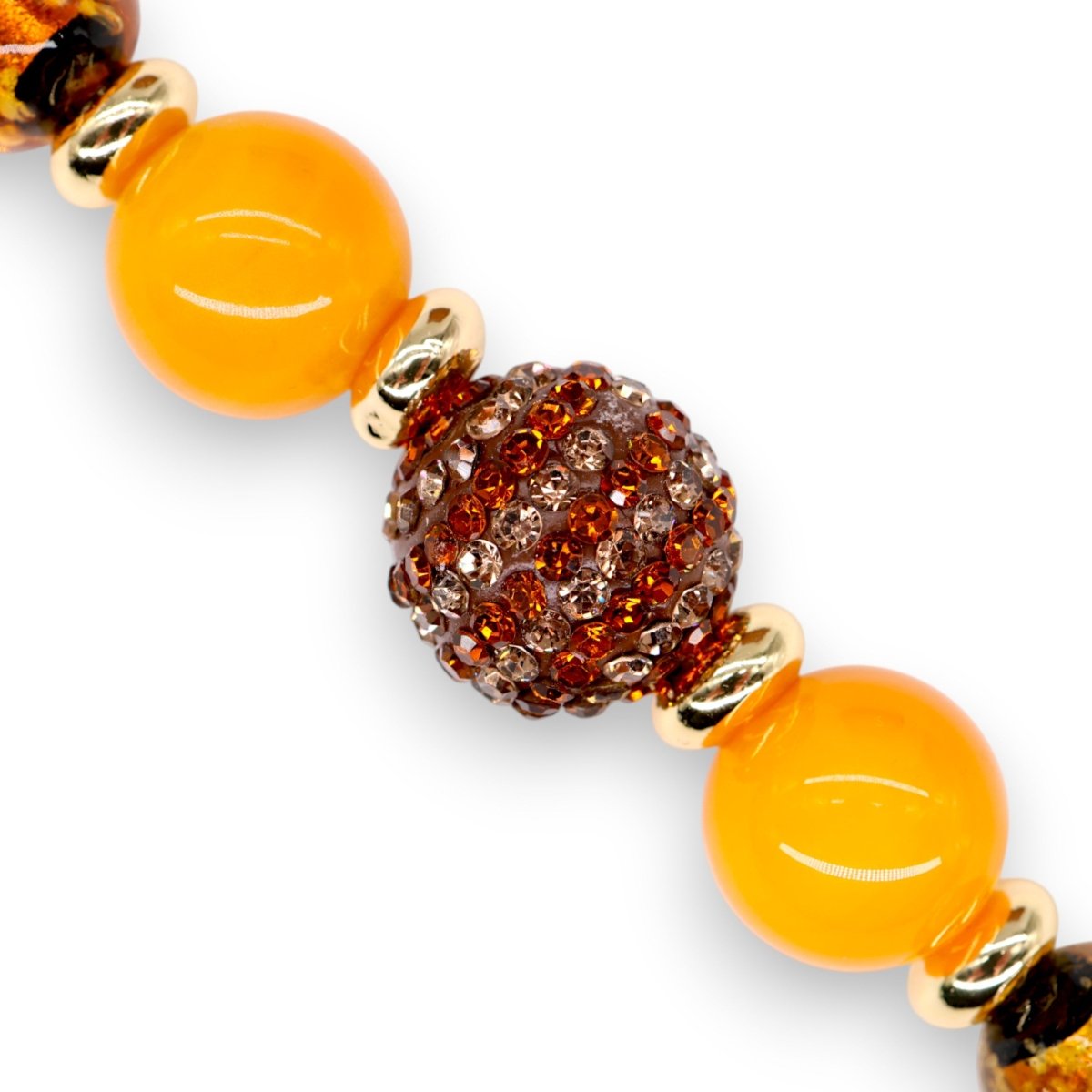At the heart of this design lies a stunning handcrafted center bead, set with Austrian crystals in gold and auburn tones for refined brilliance—making Pumpkin Spice a true work of art.