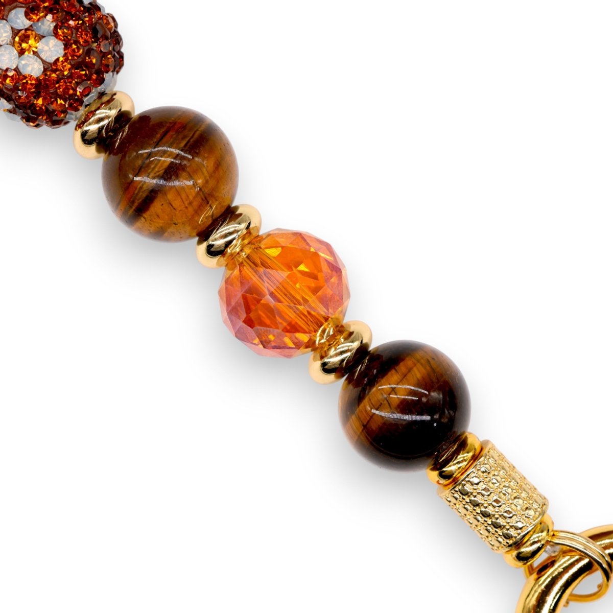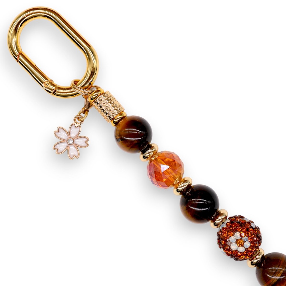 18K gold-plated accents and rich autumn hues bring this design to life. At its center, a handcrafted auburn rhinestone daisy bead shines beside genuine tiger eye gemstones and faceted crystal glass that catches the light with every movement. Finished with a delicate white daisy charm - a warm, radiant statement for the season.