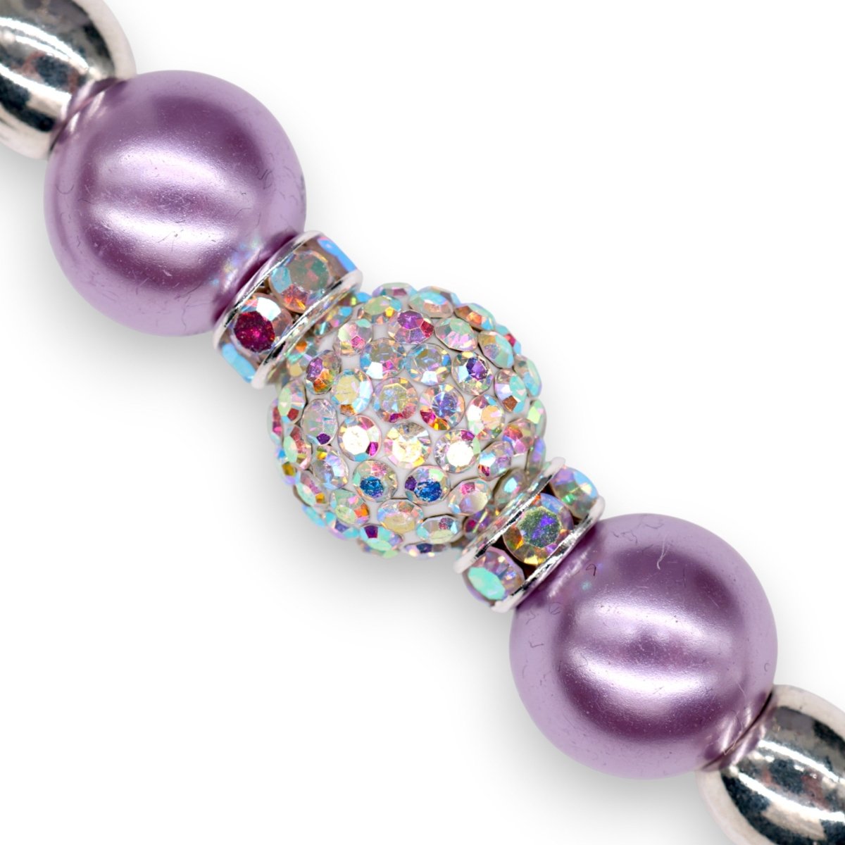 A tribute to nature’s delicate beauty, Hummingbird Dream Mini captures the whimsy and wonder of a blooming garden. Soft lilac pearl glass beads shimmer alongside iridescent spacer beads, while a handcrafted Austrian Crystal centre bead adds a dazzling touch.