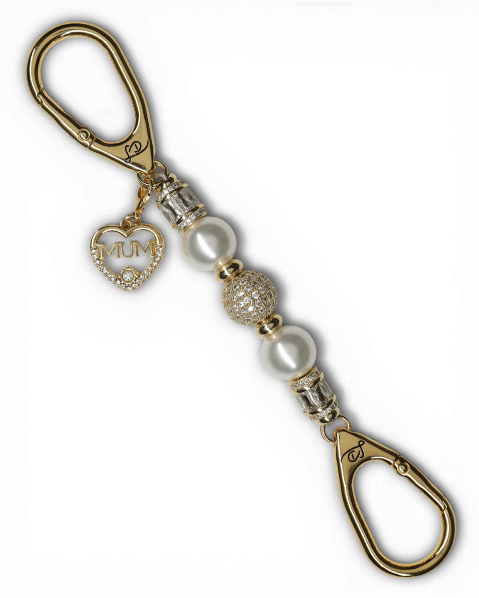 Finished with an 18KT gold-plated heart charm that reads “Mum”, adorned with shimmering rhinestones, this piece is both meaningful and timeless.