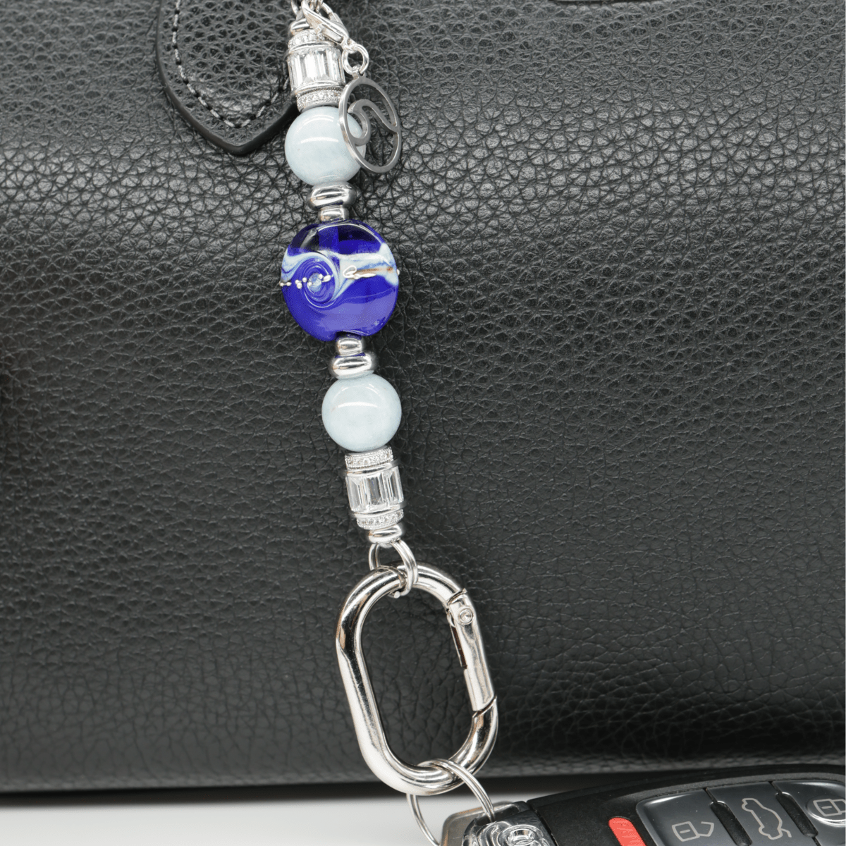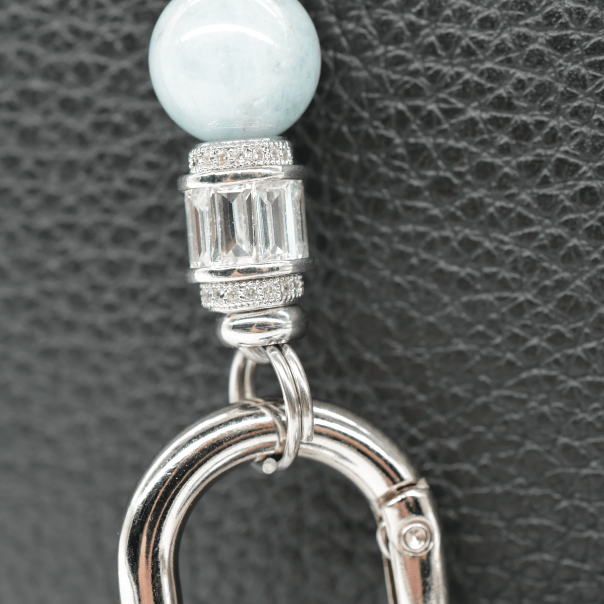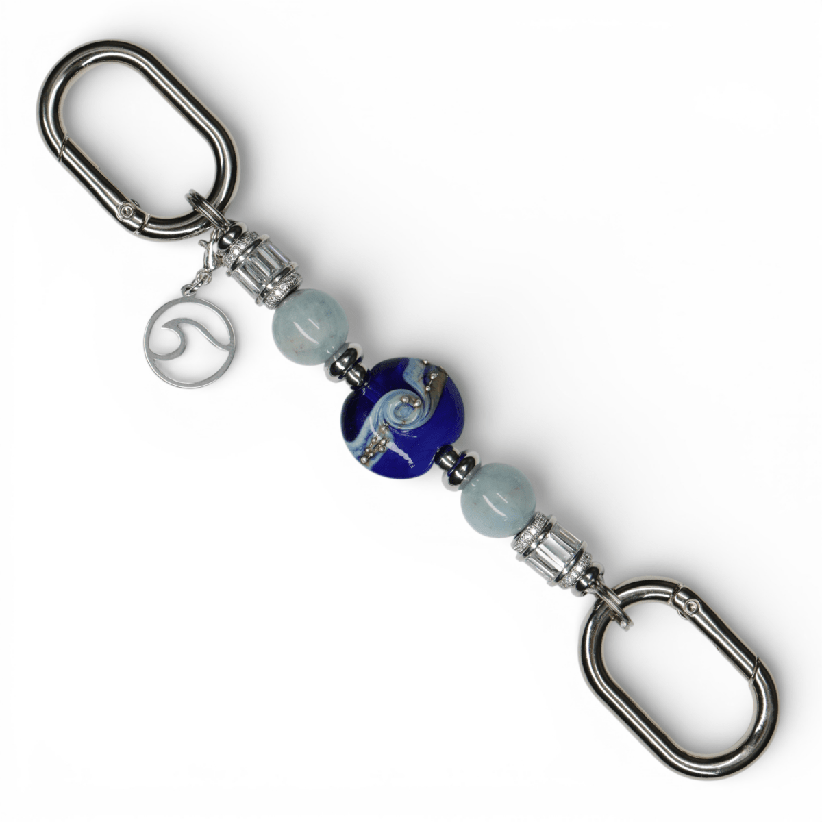 Finished with polished platinum plated accents and stunning baguette rhinestone end beads, Petite Blue Reflections is a delicate coastal treasure designed to keep your keys close while bringing a sense of serenity and effortless style to your day.