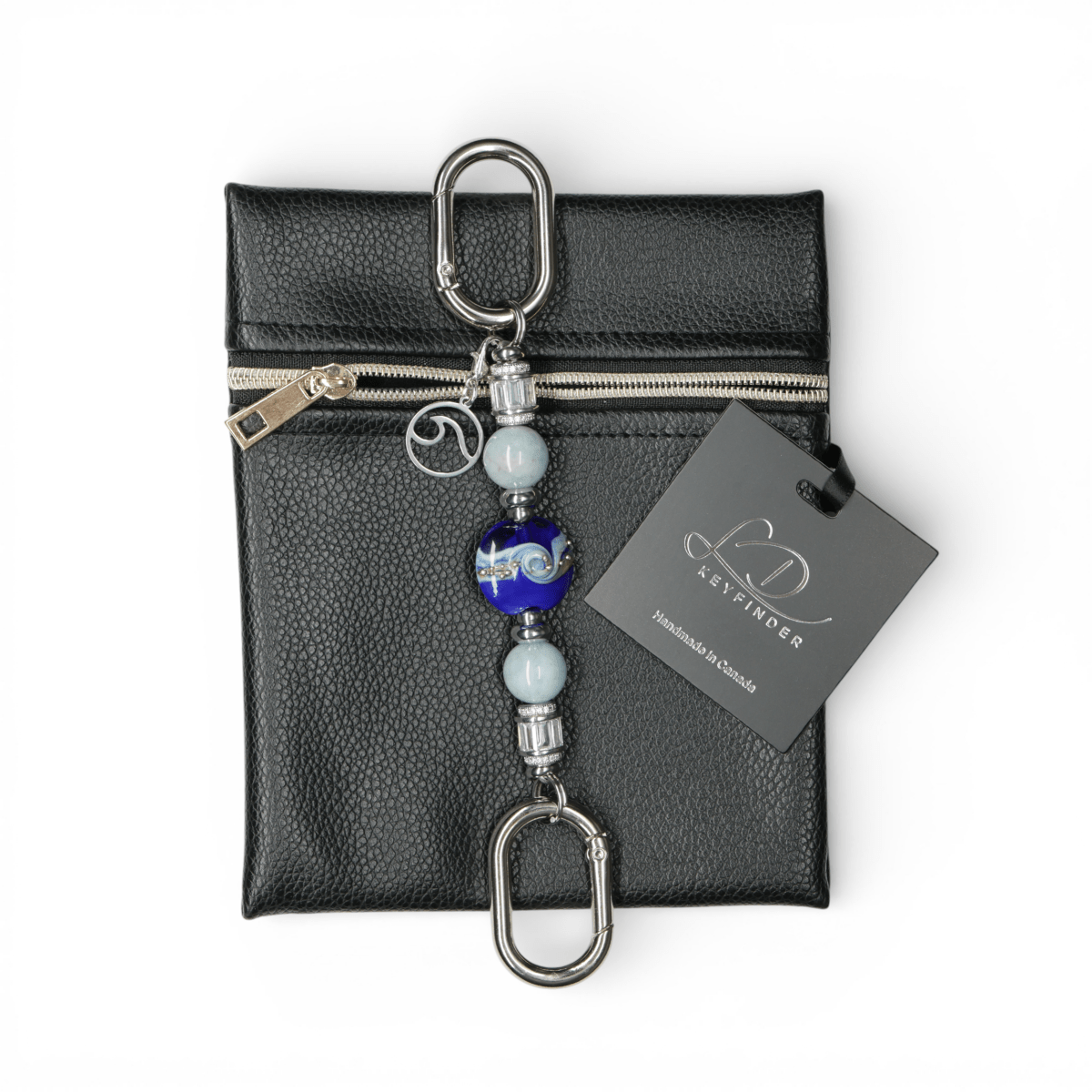 Each Petite Blue Reflections LD Keyfinder arrives in a black vegan leather pouch - a thoughtful little treasure to carry, gift, and cherish.