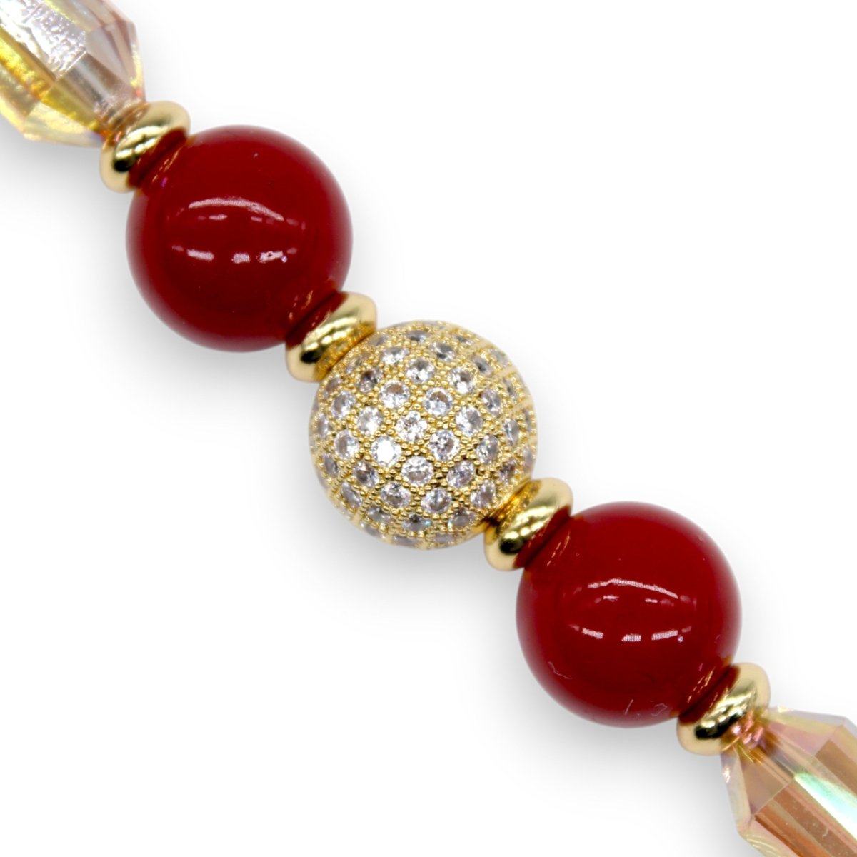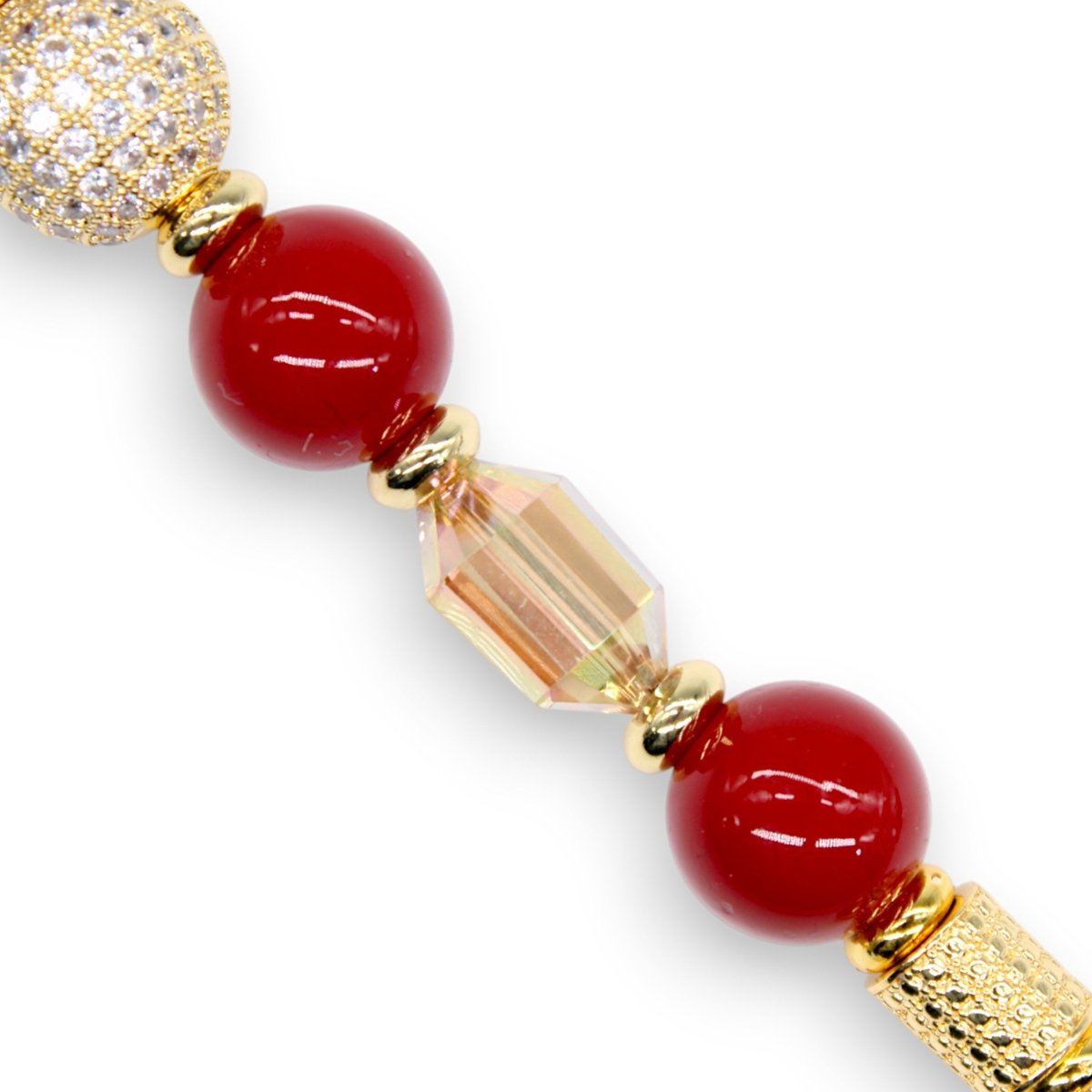 At the heart of Berry Bloom is a breathtaking 18KT gold-plated micro pavé bead—encrusted with shimmering cubic zirconia for an elegant, light-catching sparkle. Radiating with warmth and charm, this design blends luxe detailing with playful accents, making it the perfect summer accessory for women who adore a touch of glam.