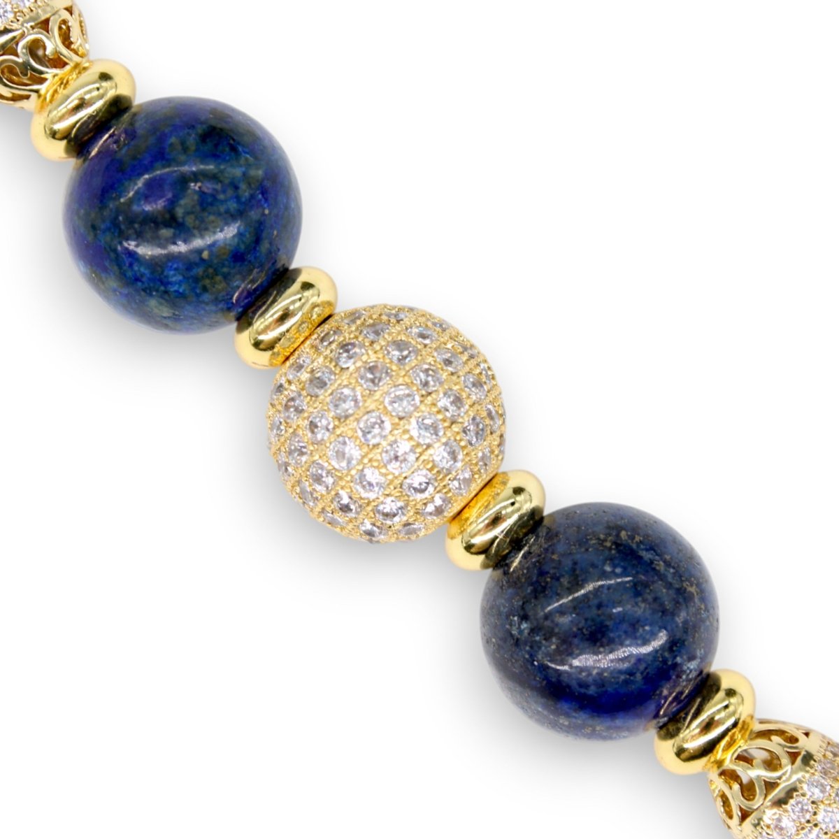 At the heart of Lapis Dream are genuine lapis lazuli gemstone beads—rich in deep celestial blues and delicately veined with natural gold. Long revered as a stone of truth, wisdom, and regal grace, each lapis bead evokes a sense of ancient luxury and timeless power.