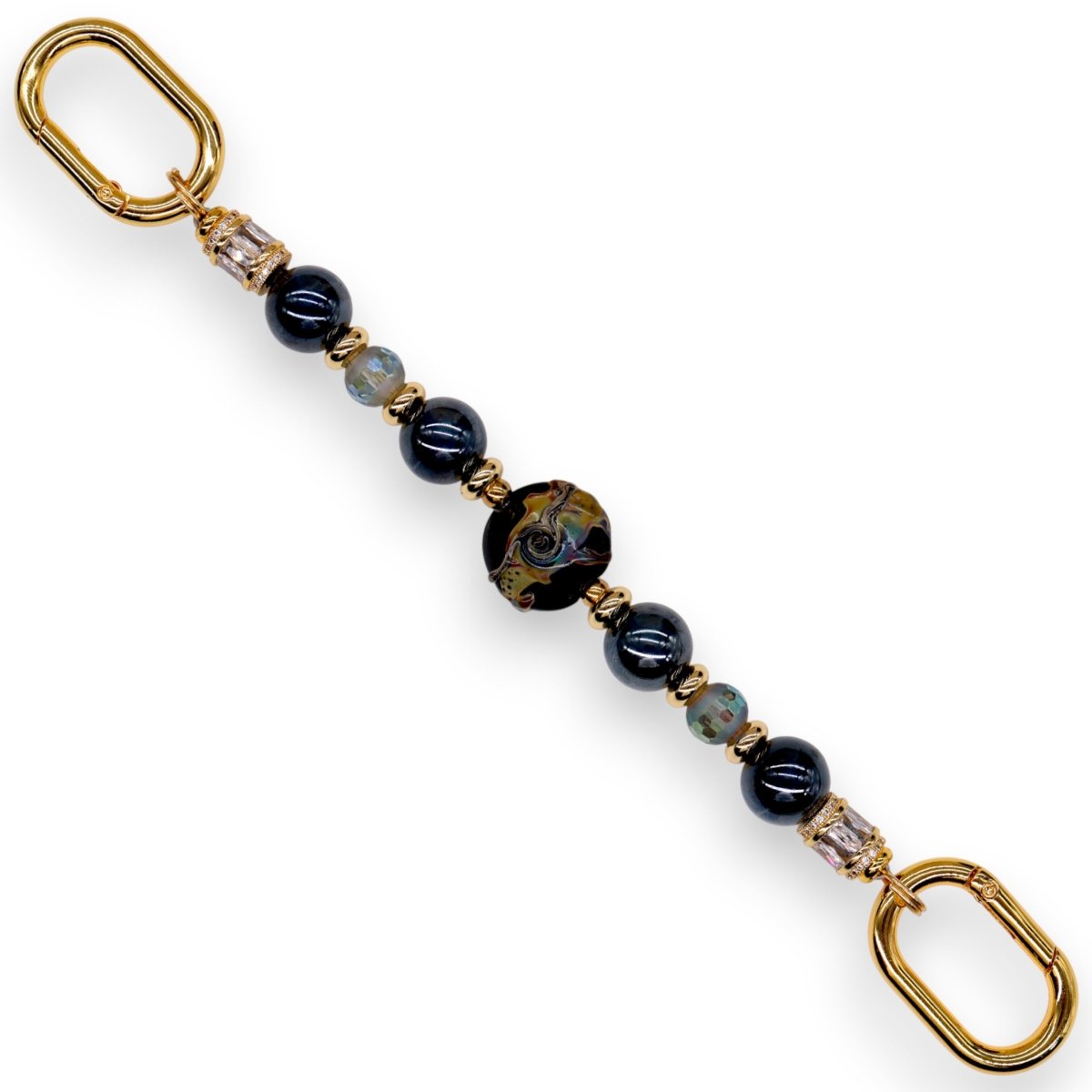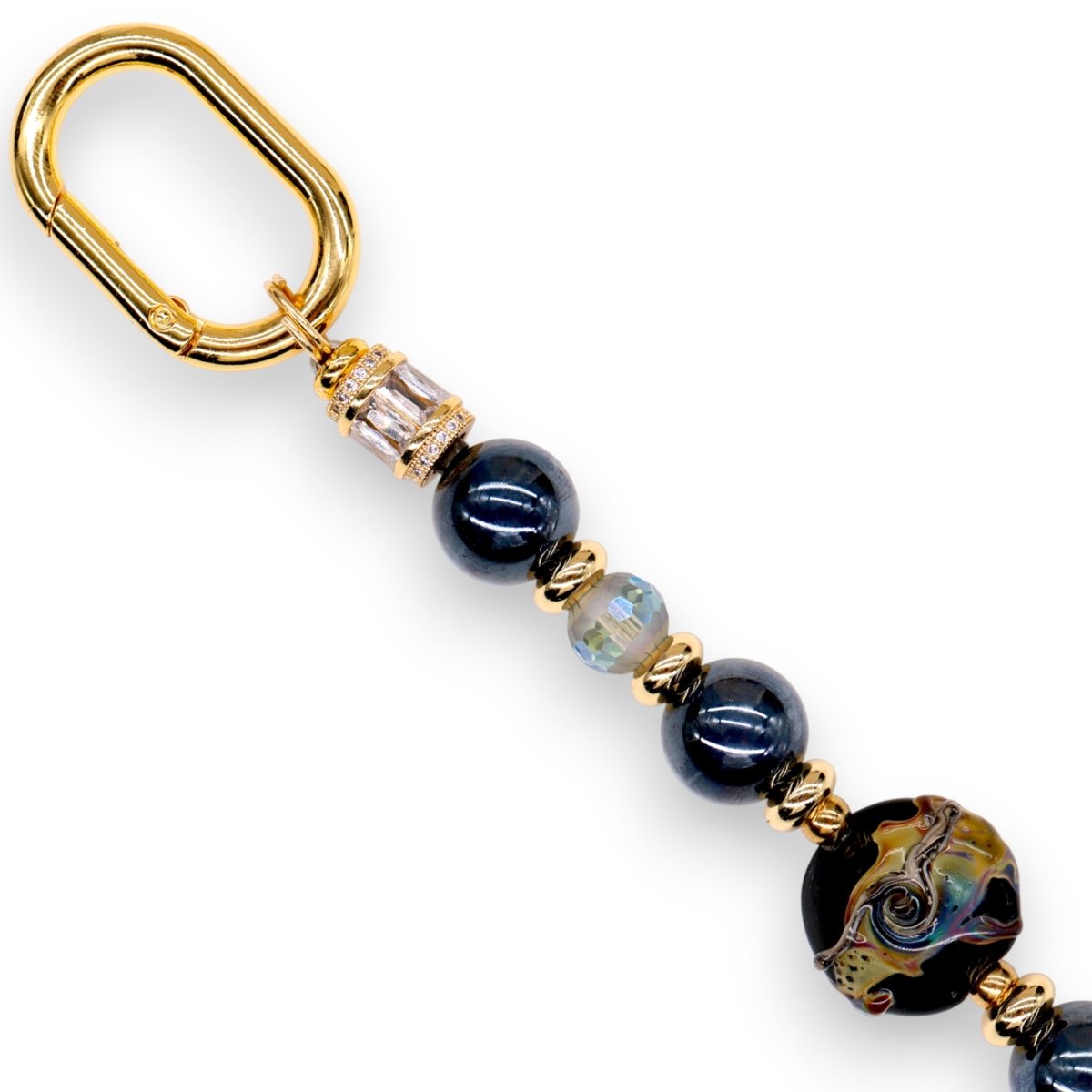 Framed with luxurious 18KT gold-plated spacer beads and finished with 18KT gold-plated end beads adorned with micro pavé and baguette-cut cubic zirconia, every detail of this piece speaks to refined artistry and timeless elegance. Bold, enchanting, and unforgettable, Midnight Mirage is a design destined to be treasured.