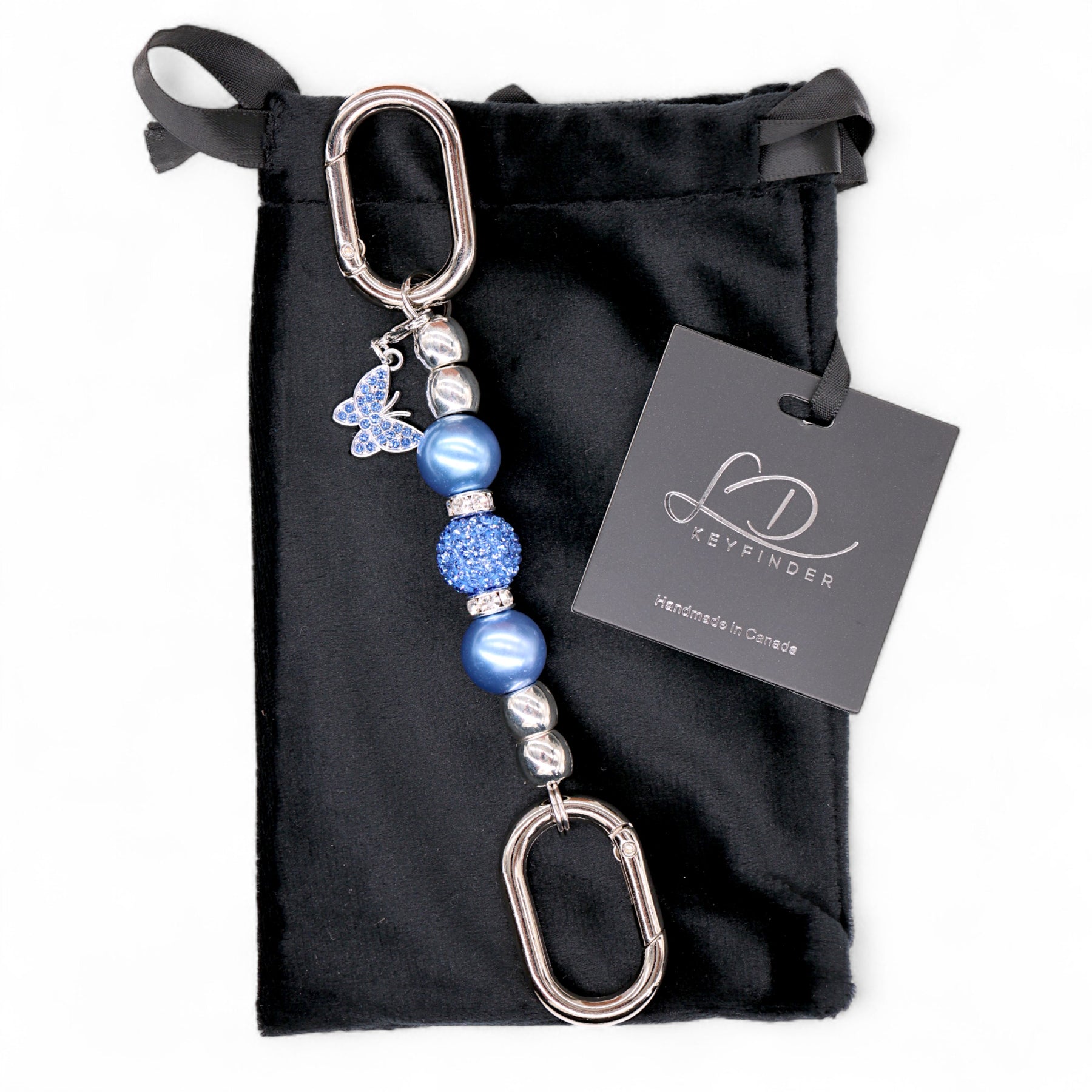 Presented in a luxurious black velvet bag, the Blue Butterfly Mini LD Key Finder is the perfect blend of style and function, ideal for those who appreciate the beauty of simplicity and the elegance of blue.