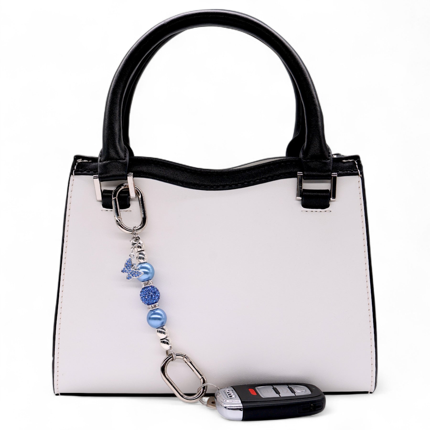 - Silver-Plated Butterfly Charm – Encrusted with blue rhinestones, bringing a touch of sparkle and romance to the design