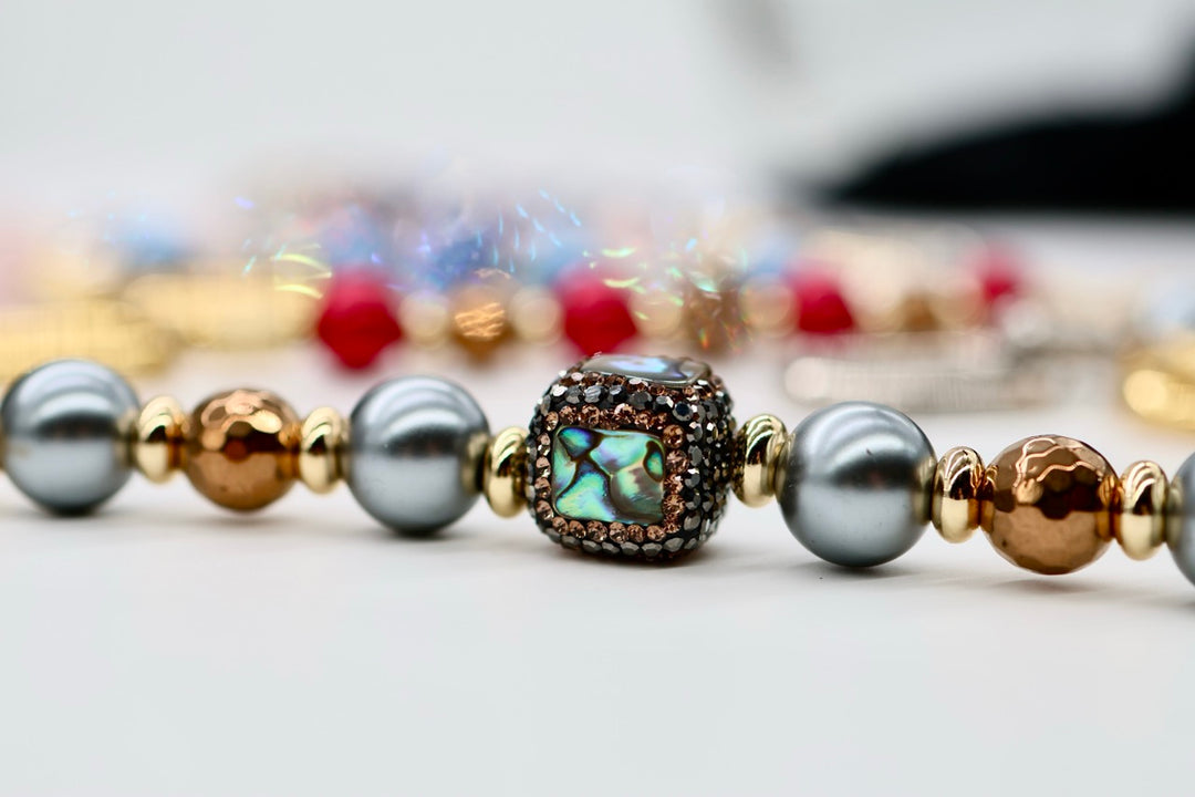 - Golden Austrian Crystal Gemstones – Subtle sparkle with timeless elegance
