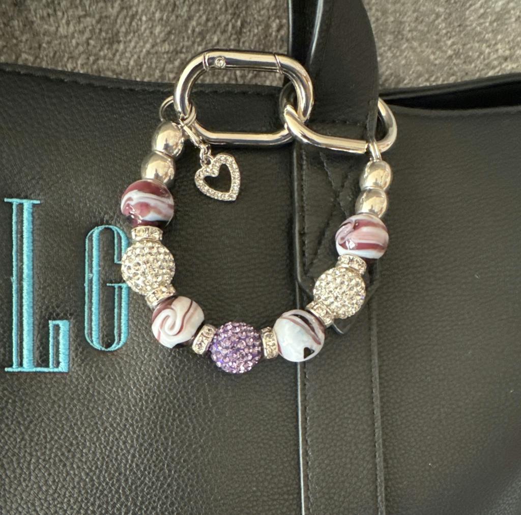 Soft lilac pearlized glass beads paired with luminous Austrian crystals define the Lilac Shimmer LD Keyfinder, a radiant symbol of love, light, and effortless elegance. Graceful yet striking, this design captures the beauty of serenity and the magic of shimmering color.