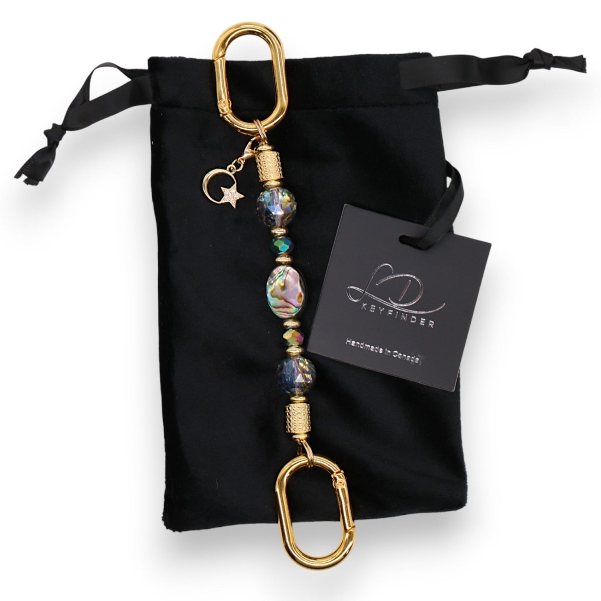 Each LD Keyfinder is thoughtfully hand-made in Canada by a team of passionate crafters, using a reinforced wire, rated for 90 lbs. The finest beads, crystals and gemstones are used and globally sourced from local and worldwide artisans