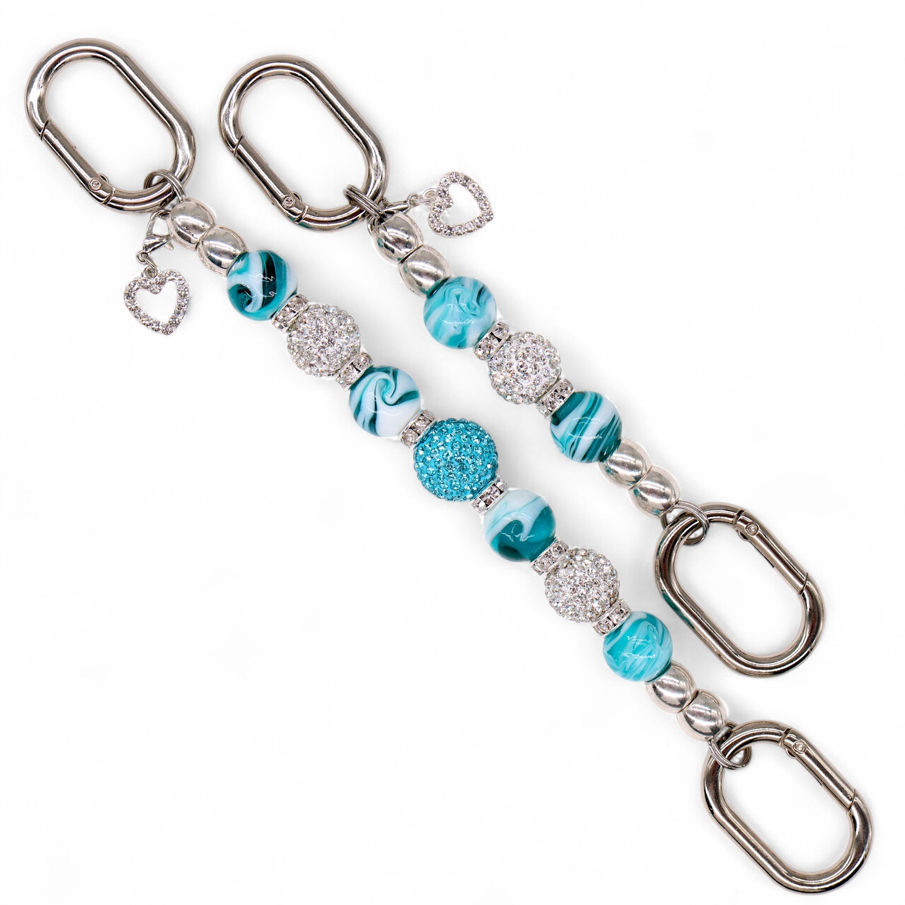 Each one is handcrafted with handblown teal glass beads, white Austrian crystal spacers, and an oversized center Teal Austrian crystal center bead. I finished both with silver-plated heart and crystal charms that add just the right touch of sparkle and meaning.