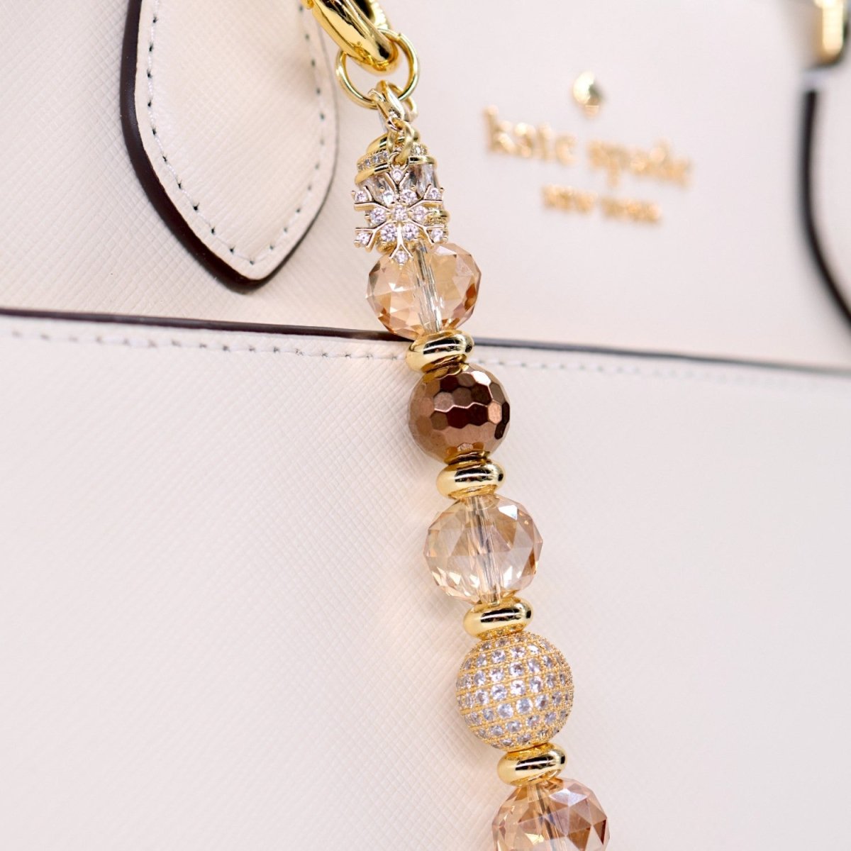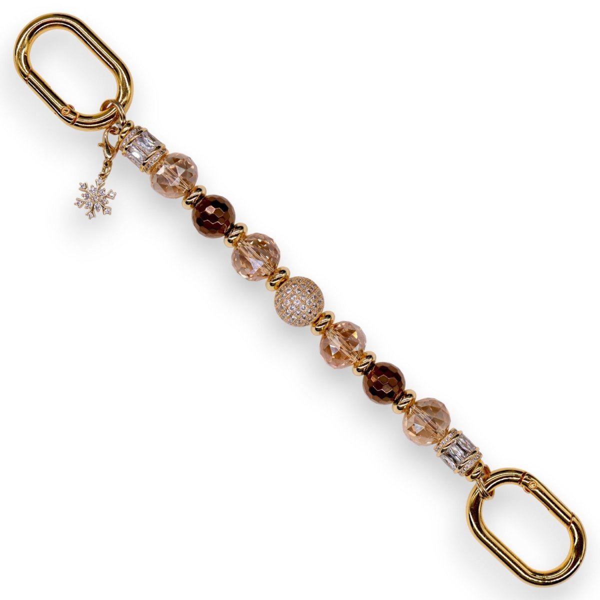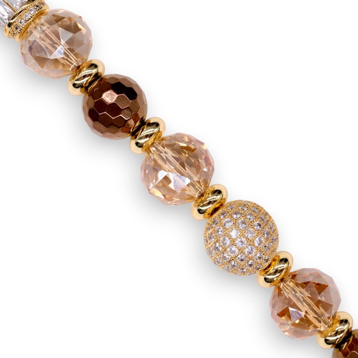 At its heart, an 18KT gold-plated micro pavé rhinestone center bead shimmers with radiant brilliance, beautifully complemented by a gold-plated micro pavé snowflake charm that captures the quiet wonder of winter’s first light. Surrounded by electroplated golden faceted crystal glass beads and rich copper-plated golden hematite gemstones—known for their grounding, balancing energy—this design sparkles with warmth, depth, and elegance.
